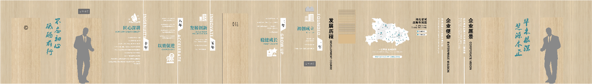 項目背景:華正環(huán)境是一家專業(yè)從事環(huán)境檢測并基于環(huán)境檢測開展環(huán)境咨詢服務的高新技術企業(yè), 成立于2013年,總部位于武漢市東湖高新技術開發(fā)區(qū)。旗下設有武漢華正、江西慧正、寧夏華正、宜昌華正、襄陽華正等5個標準化實驗室以及華正環(huán)境研究院、湖北葦杭環(huán)??萍加邢薰镜葘I(yè)的環(huán)境咨詢服務機構。 經過近10年的發(fā)展,“華正環(huán)境”依托自有具有規(guī)?;牡谌江h(huán)境檢測平臺,構建特色鮮明、優(yōu)勢互補的環(huán)境檢測和環(huán)境咨詢“雙輪驅動(T+C)”發(fā)展模式。全方位為政府、園區(qū)、企業(yè)提供 “一站式”第三方環(huán)境綜合服務,統(tǒng)籌解決各方面環(huán)境問題。服務范圍覆蓋華中及中西部地區(qū)多個省份,為近萬家客戶提供各類“環(huán)境檢測”和“環(huán)境咨詢” 綜合解決方案。艾的爾品牌設計承接其文化墻設計,與客戶深入溝通后,結合企業(yè)自身特點,從企業(yè)簡介,發(fā)展歷程,使命,愿景,榮譽,公益等出發(fā),內容簡潔明了、主題突出。