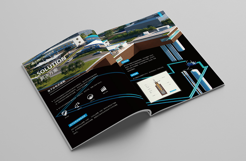 項目背景:中冶武勘堅持“冶金勘察國家隊,資源保障主力軍,基本建設排頭兵,巖土工程、智慧應用、資源勘查領域具有特色的工程綜合服務提供商”戰(zhàn)略定位,依托測繪、勘察、檢測監(jiān)測、巖土工程等傳統(tǒng)主業(yè)核心基礎支撐,積極打造工程總承包、智慧應用、能源環(huán)保、資源開發(fā)四大業(yè)務板塊,構建傳統(tǒng)主業(yè)及資源勘查與礦山建設、智慧應用、地下空間開發(fā)、巖土工程一體化、新能源工程、生態(tài)環(huán)境治理、特色基礎設施建設八個業(yè)務方向,為客戶提供集規(guī)劃、投資、建設、運維為一體的工程全生命周期服務。艾的爾設計接受其委托,承接畫冊設計項目。在畫冊設計、創(chuàng)意的過程中,設計師通過對行業(yè)屬性進行深入地了解,根據(jù)企業(yè)屬性,進行了畫冊設計、創(chuàng)意。在畫冊封面設計中,選用具有深地儲氫系統(tǒng)代表性且現(xiàn)代感、企業(yè)化的圖片組合成‘H’和‘M’,‘H’代表氫能源,則右側(cè)設計感的‘M’代表MCC,對字母組合進行藝術化設計,使得整個封面具有嚴謹、穩(wěn)重的風格,大膽留白凸顯字母‘H’和‘M’,展現(xiàn)了企業(yè)的經(jīng)營業(yè)務和追求科技以及嚴謹負責的工作態(tài)度。封面字體設計干凈利落,藍色代表理性科技,契合企業(yè)形象。在內(nèi)頁的設計中,按黃金分割比例設計,標題與文字的板塊相互呼應文圖分布疏密有致,整個版面簡潔優(yōu)雅。畫冊內(nèi)頁的顏色選用上,和封面相互呼應,以藍白等清新雅致的顏色為主。整個畫冊,設計精簡、嚴格,充分展現(xiàn)出了企業(yè)的訴求和形象。
